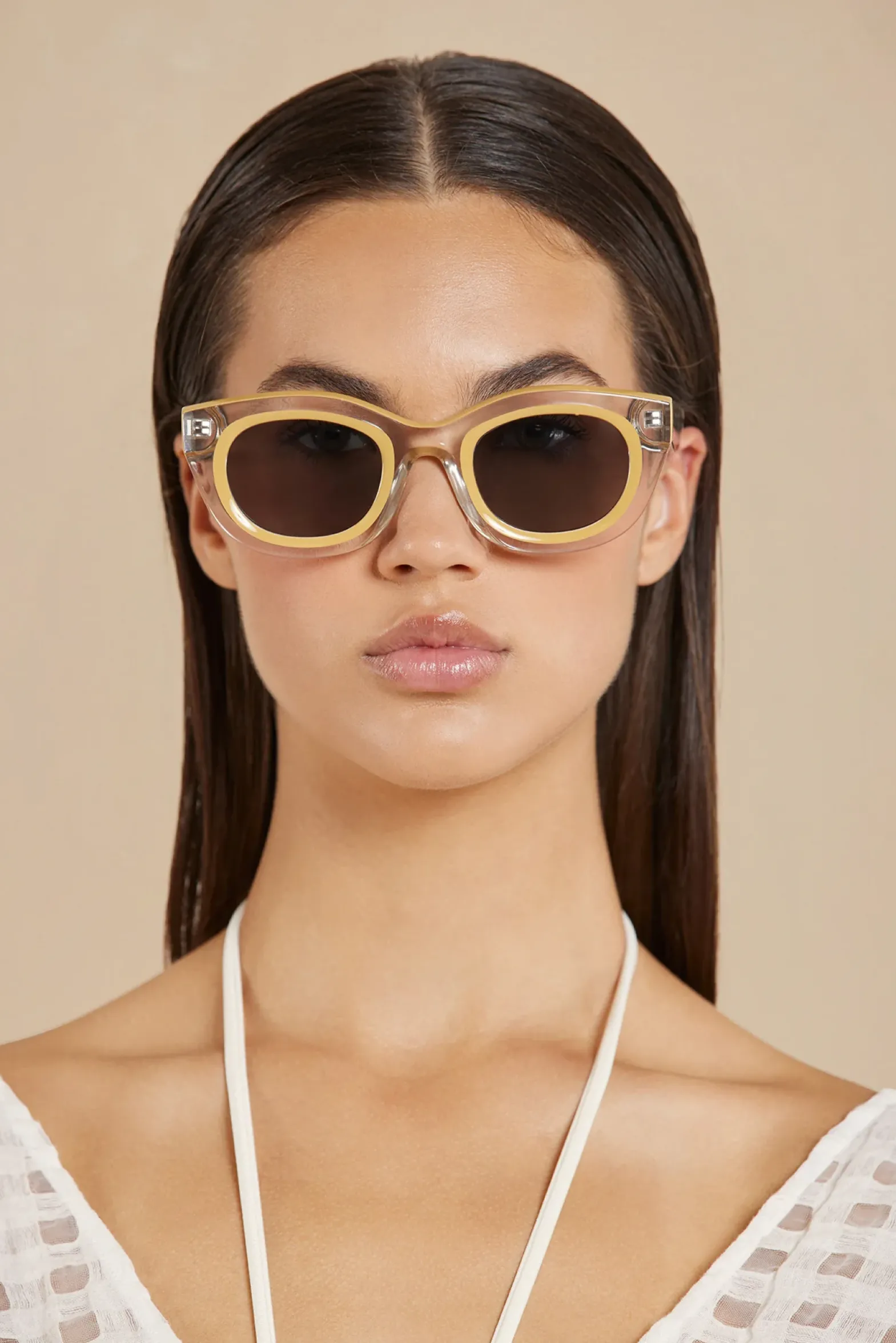 Crafted and colored with delicate precision in Italy, the Lili Sunglasses in Off White feature a unique die-cut seashell identifier in the core of the wire.
