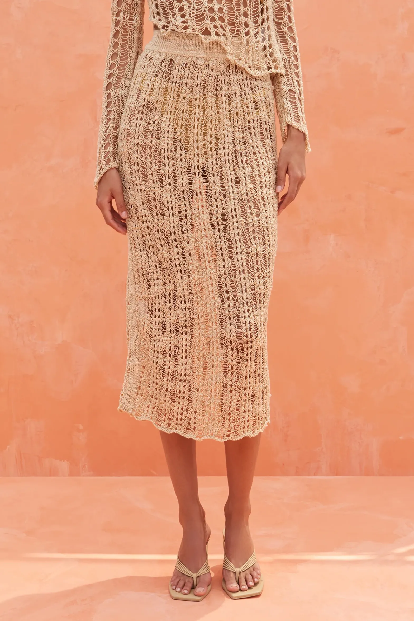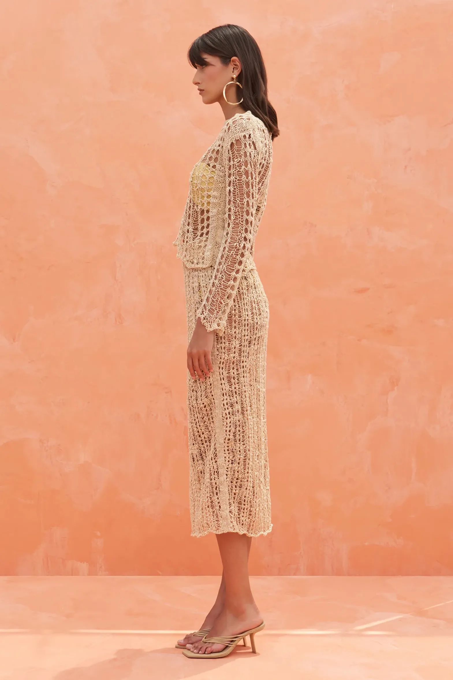 Cover Ups>Cult Gaia DAWSON CROCHET SKIRT – Champagne