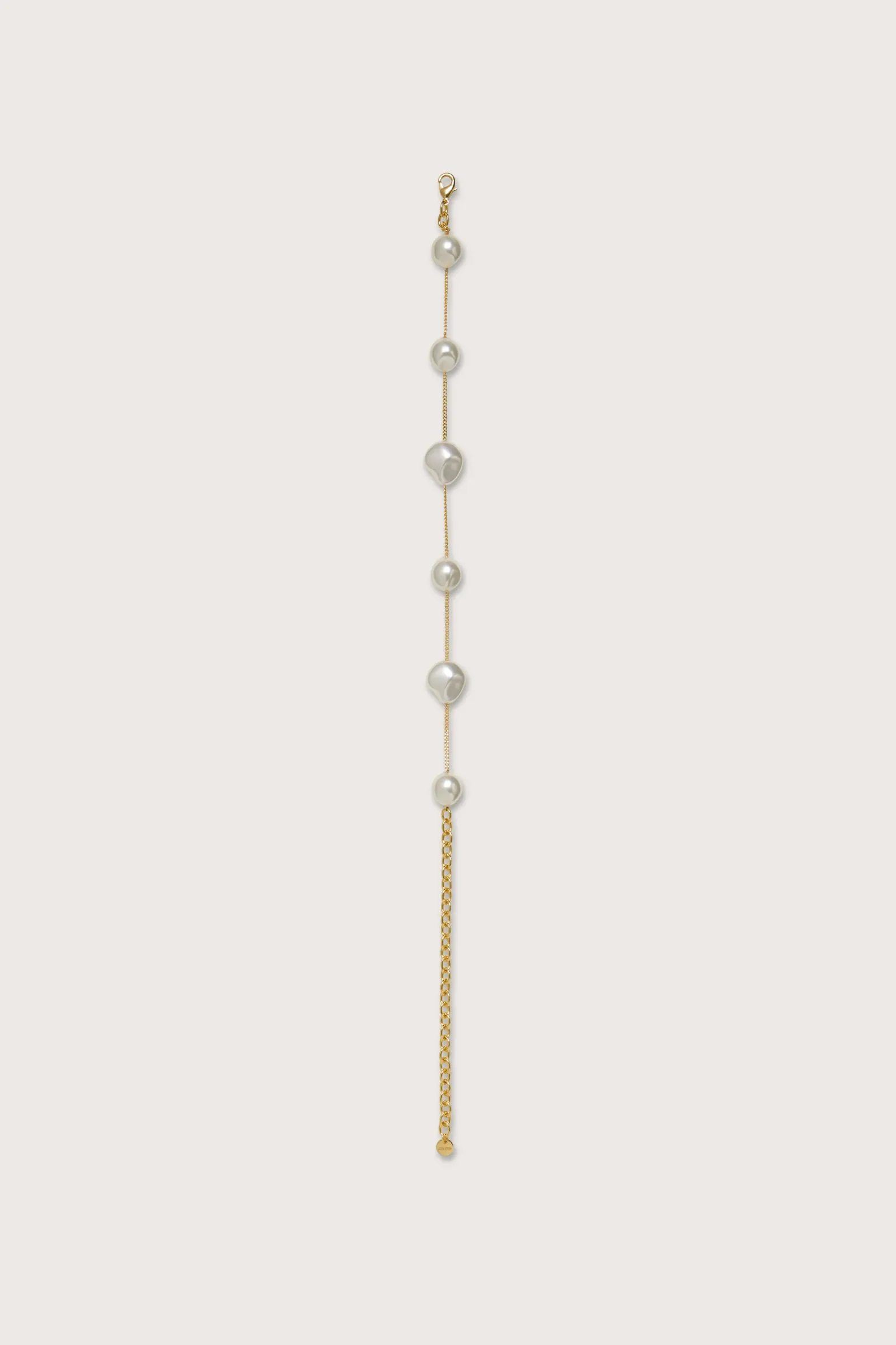 Faux pearls of irregular shape adorn the delicate chain of this choker.
