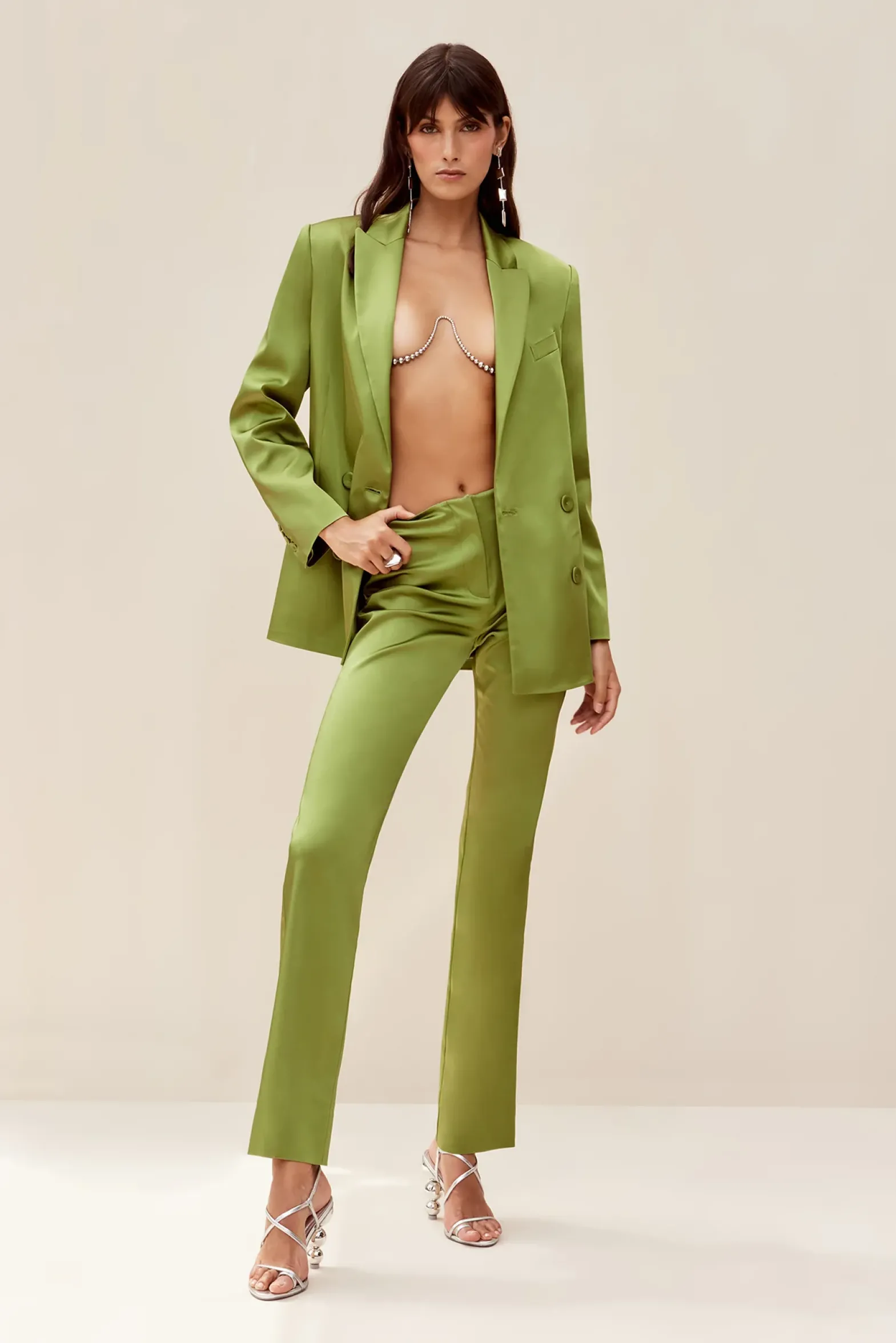 Villie is a slim-fit, high-waited pant with a minimalistic beauty. This cigarette pant is rendered in Olea-hued fabric that has a bit of stretch. A front zip and hook-and-eye closure allow for easy wear. Pair with the leafy Leonil Top or Structure Rene jacket in matching Olea tones.