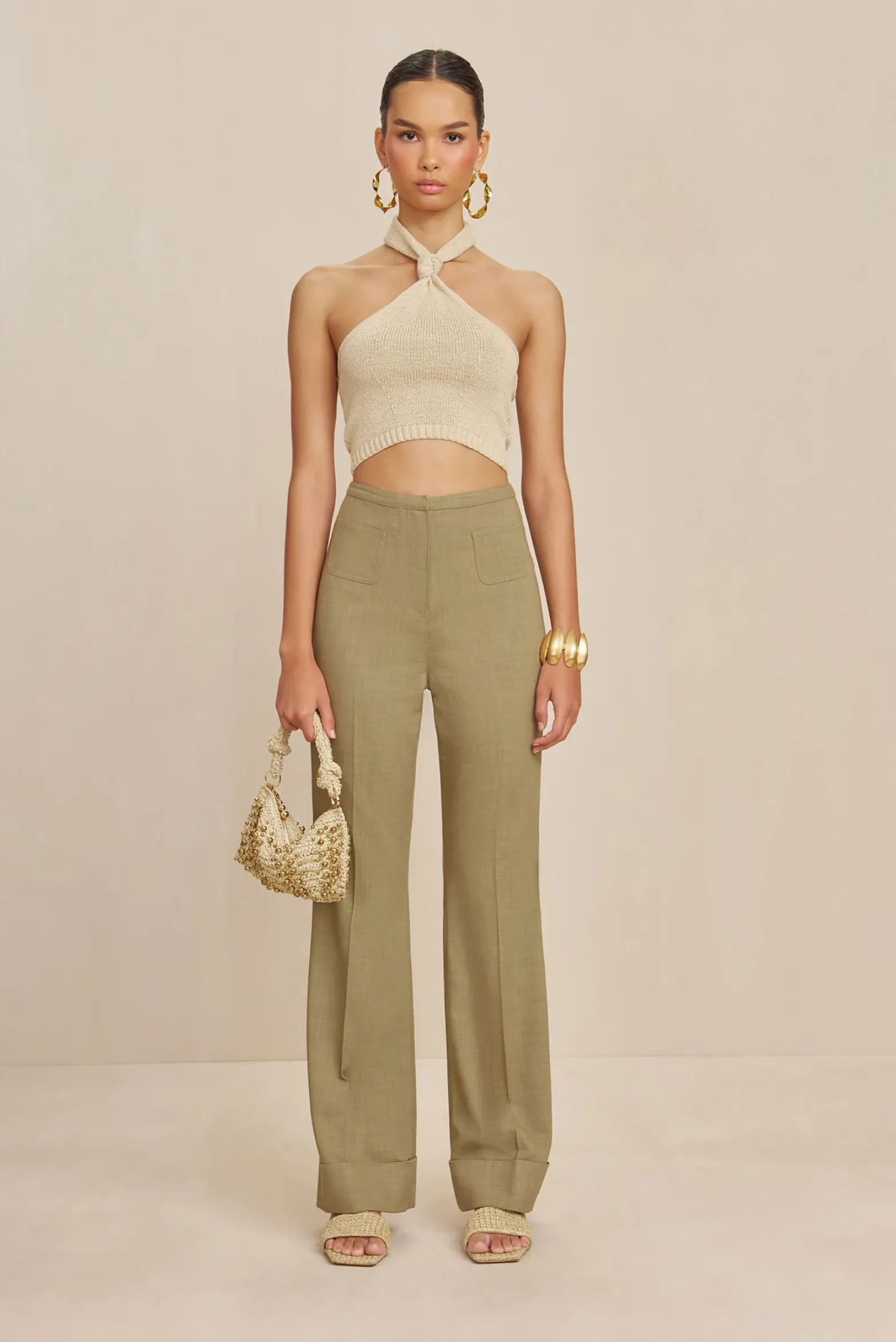 A cropped, convertible knit top with a knotting detail at the neck and open back.