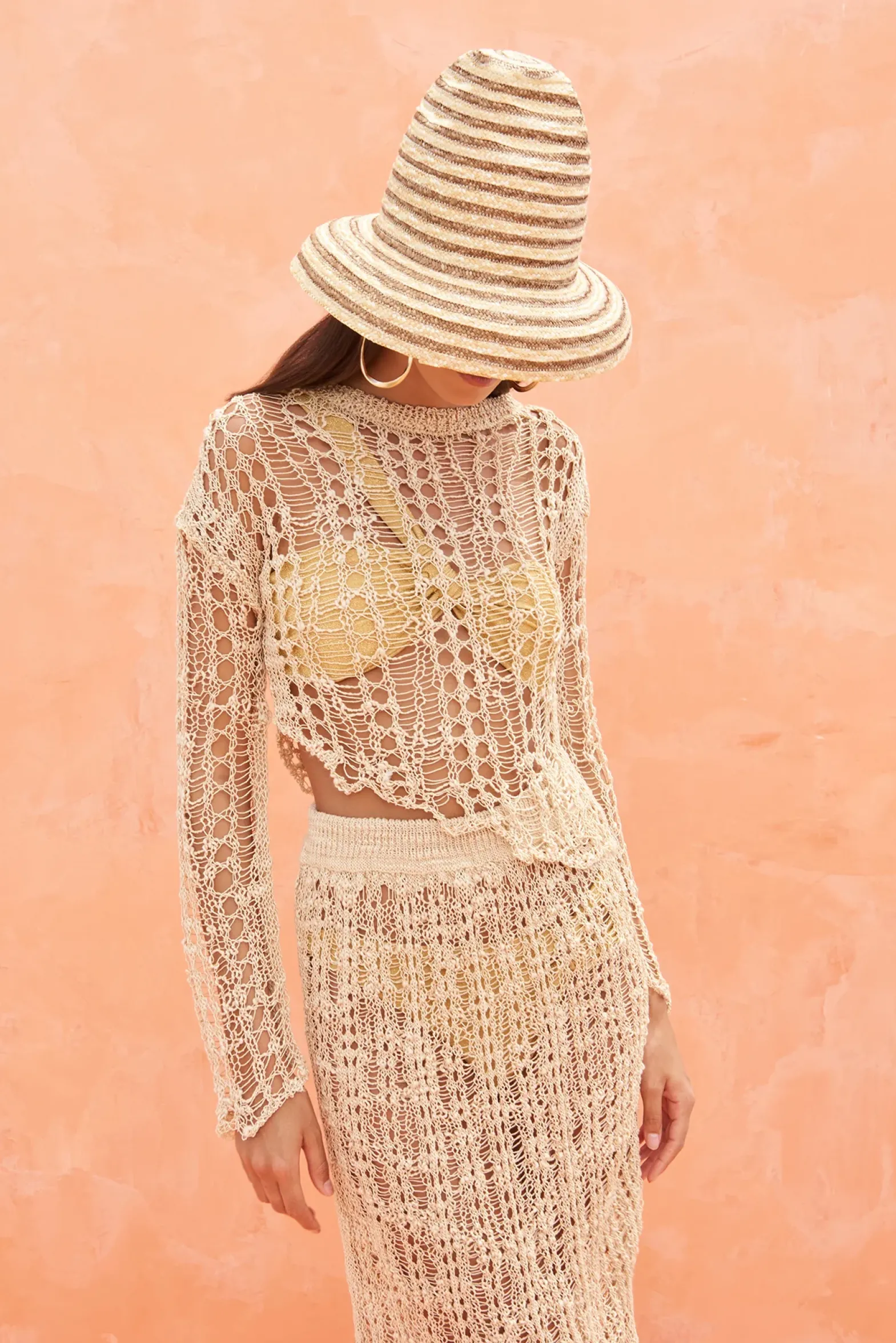 Cover Ups>Cult Gaia DAWSON CROCHET SKIRT – Champagne