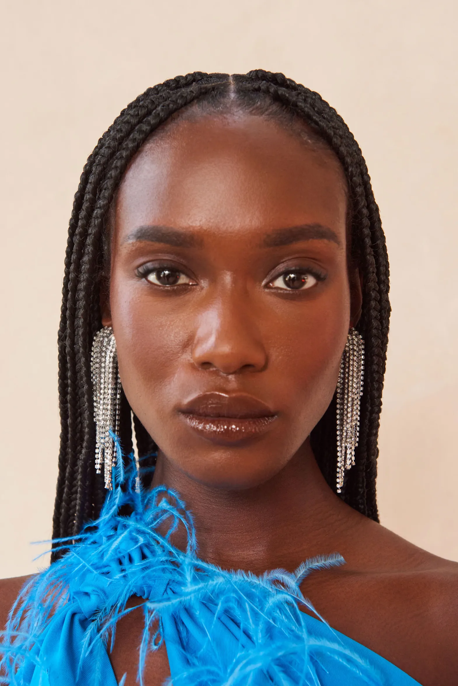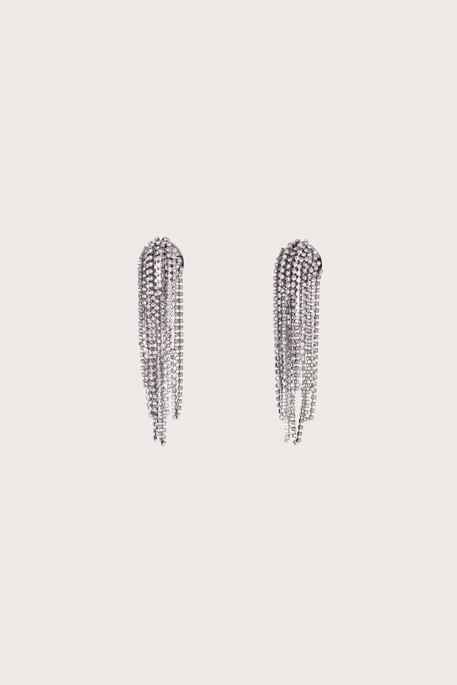 These shimmering, asymmetrical tassel earrings will light up the room. Clear rhinestone detailing on a stainless-steel frames offer incredible shine. The clip on backing offers secure hold for these lightweight accents.