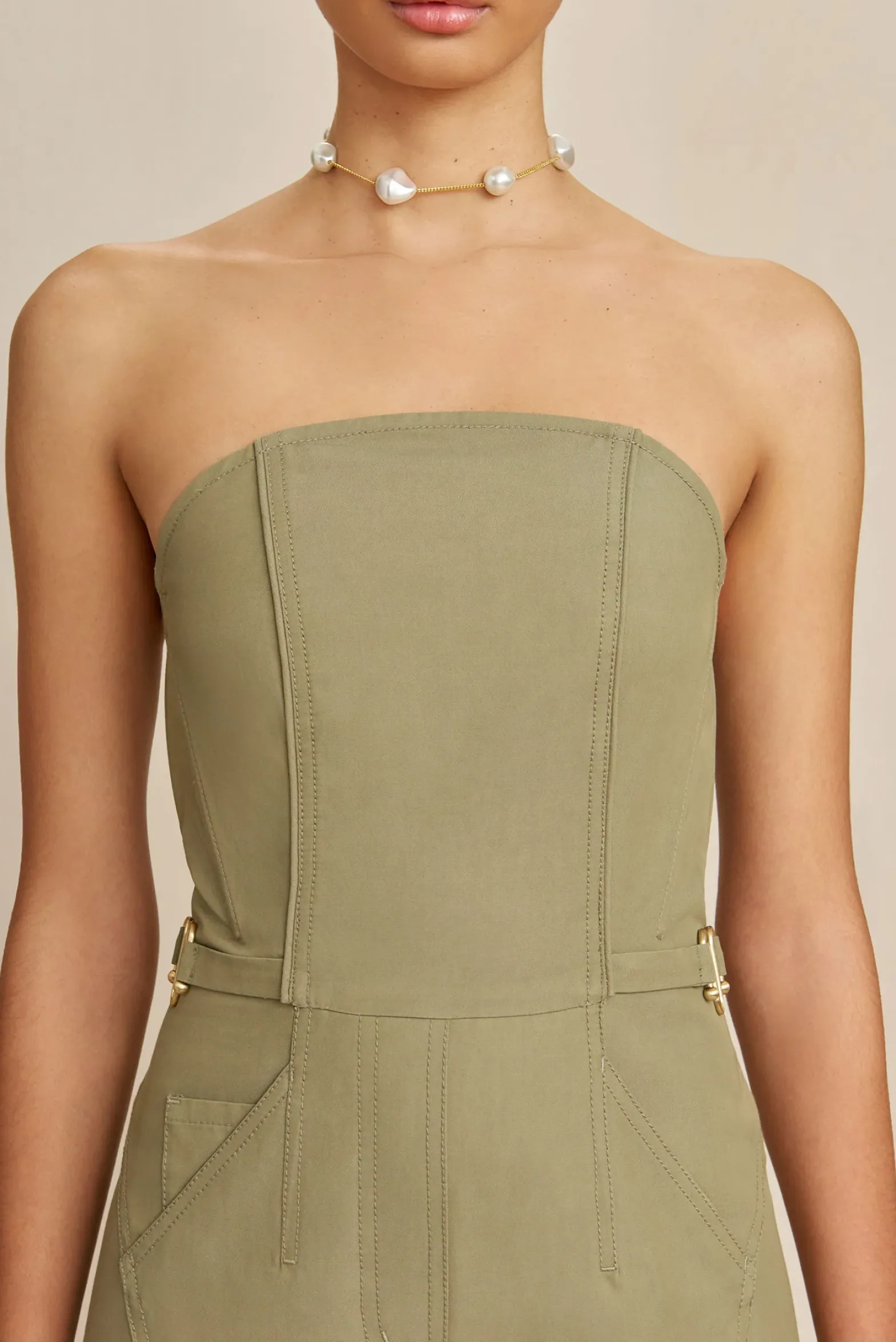Faux pearls of irregular shape adorn the delicate chain of this choker.