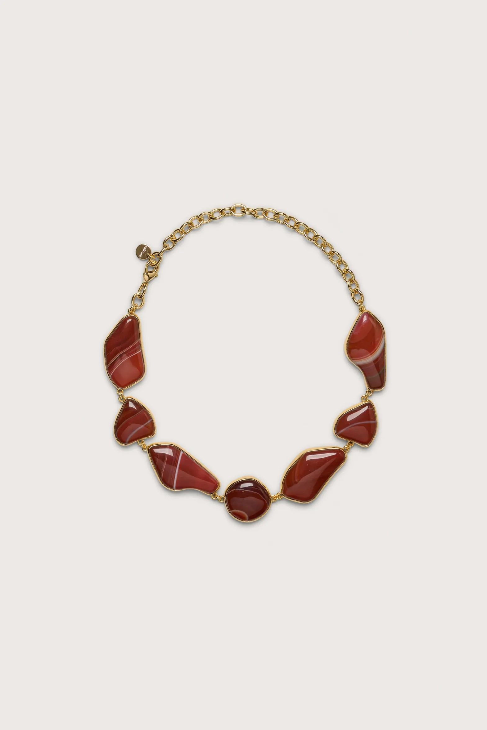 Irregular geometric shapes of Carnelian stone detail this jewel choker.