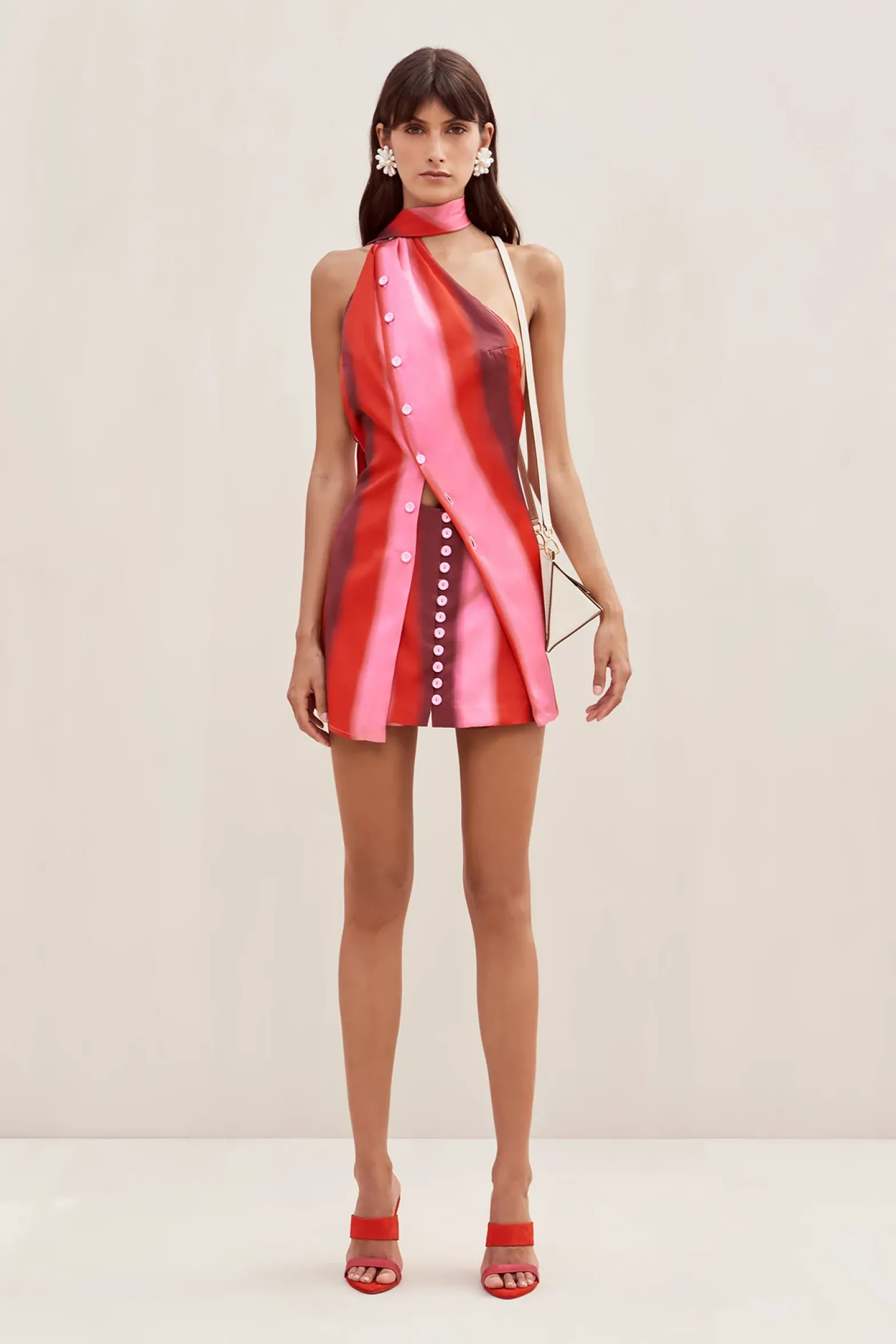 The Leilani short features a skirt-like overlayer that is connected at the front by ceramic buttons up the center. The vertical and vibrant Lollipop hues create a slimming effect. The short underlayer provides extra support and movement. Pair with the Rene Jacket in matching Lollipop tones.