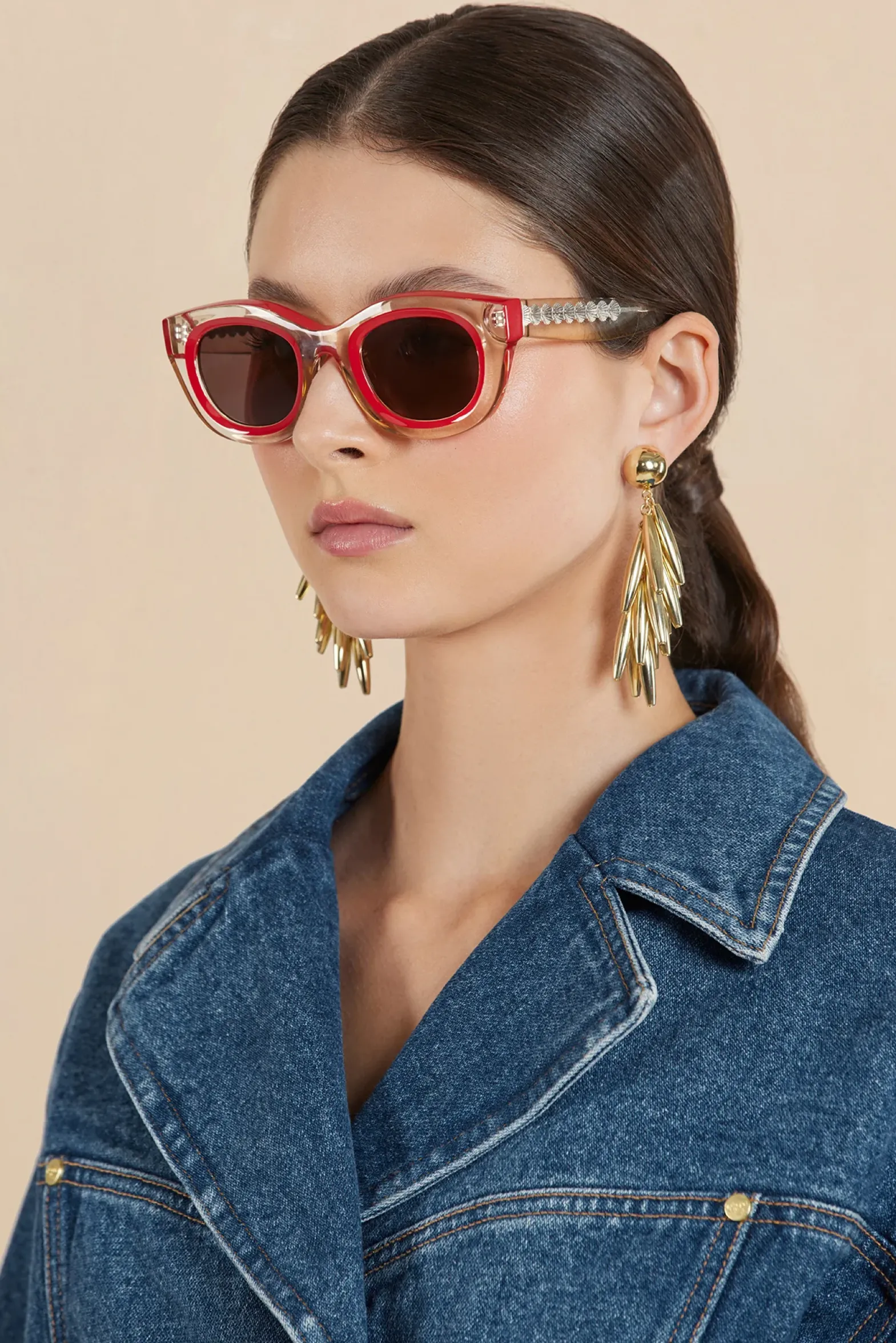 Crafted and colored with delicate precision in Italy, the Lili Sunglasses in Champagne feature a unique die-cut seashell identifier in the core of the wire.