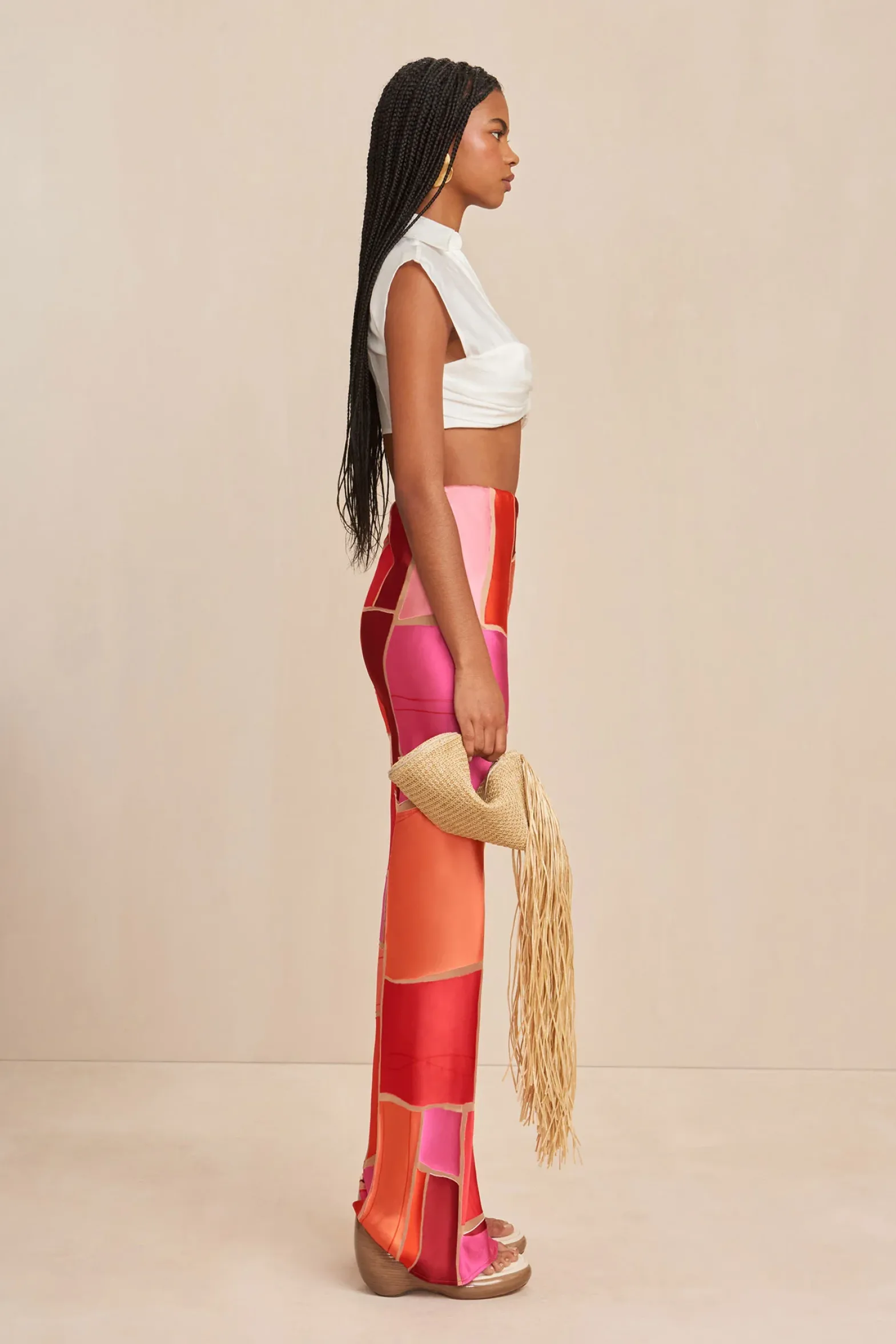 A collared crop top with a gathered bust, deep V-neck and back darts in Off White tones.